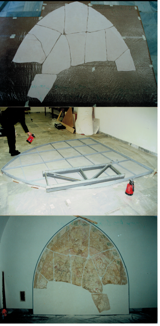 V roce 1995 byly transfery nástěnných maleb zapůjčeny Škole restaurování a konzervačních technik v Litomyšli. Zdejšími studenty byly nejvíce zachované celky Panna Marie Ochranitelka a Pieta osazeny na panely a restaurovány. V roce 2001 byly vystaveny na Pražském hradě v rámci výstavy Deset století architektury.