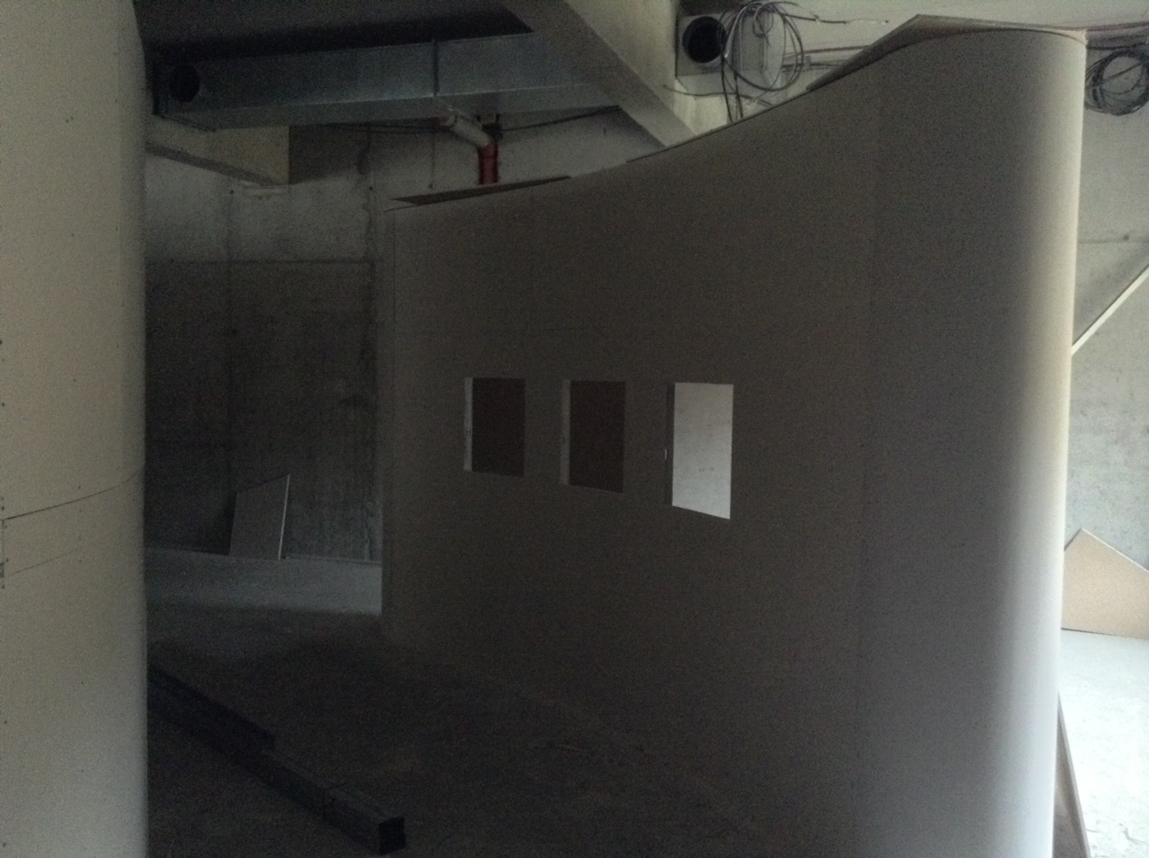 Důležitý je i kontrast, který zostřuje vnímání. Kontrast mezi pravoúhlými liniemi designově čisté stavby a křivkou expoziční stěny; kontrast mezi tmavou expoziční stěnou a barevnými nasvícenými výklenky, ve kterých budou umístěny exponáty.