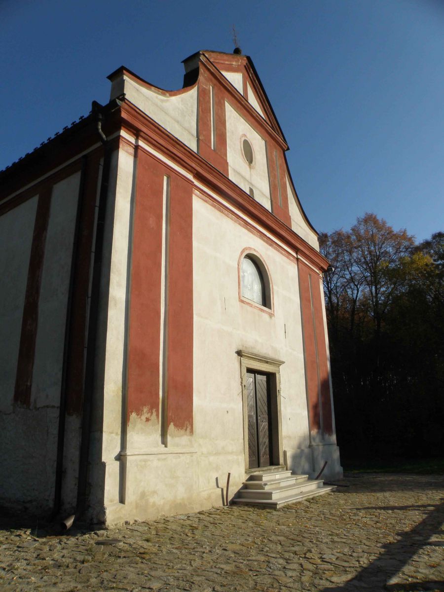 3) Západní průčelí kostela v Zahrádce s opravenými vstupními dveřmi