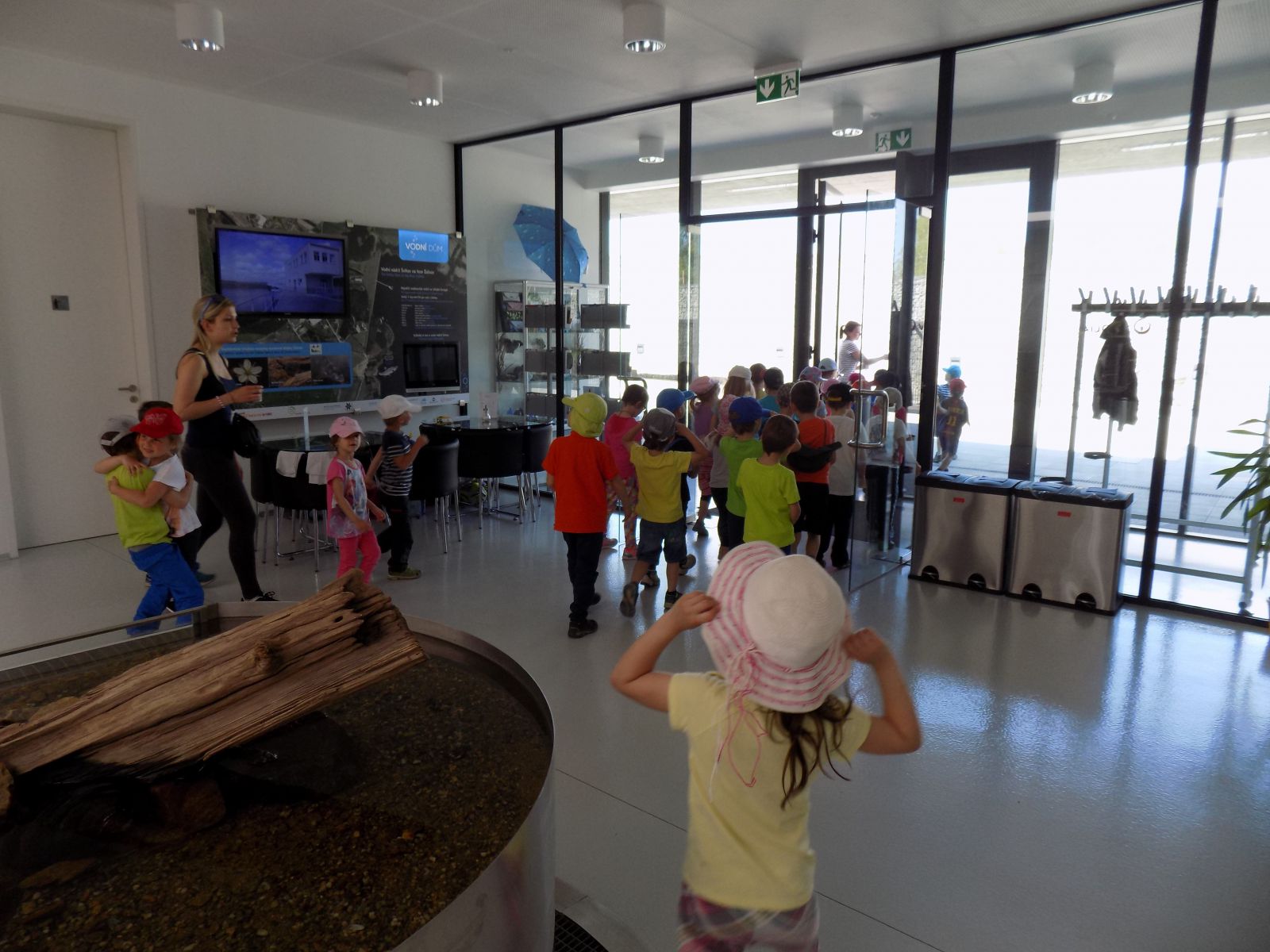 Při hrátkách s vodou v atriu je třeba spolupracovat.