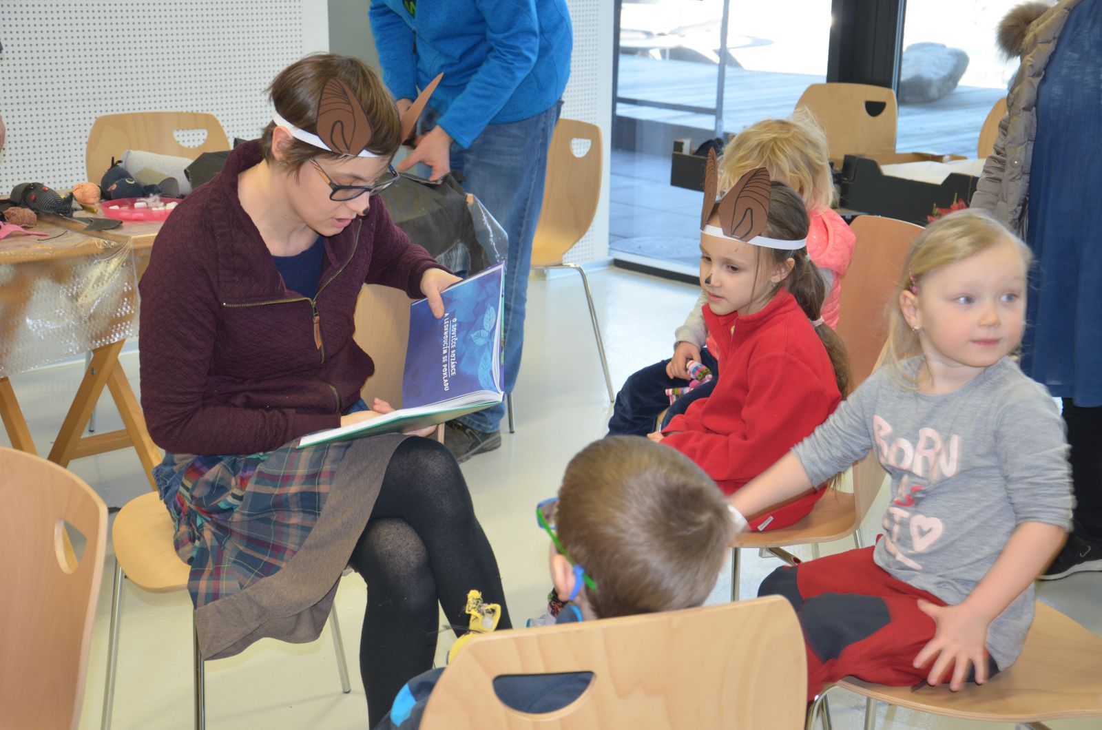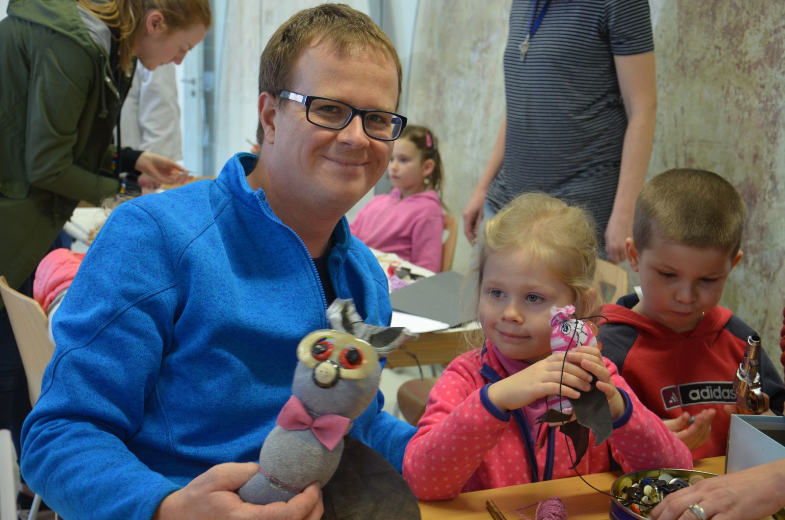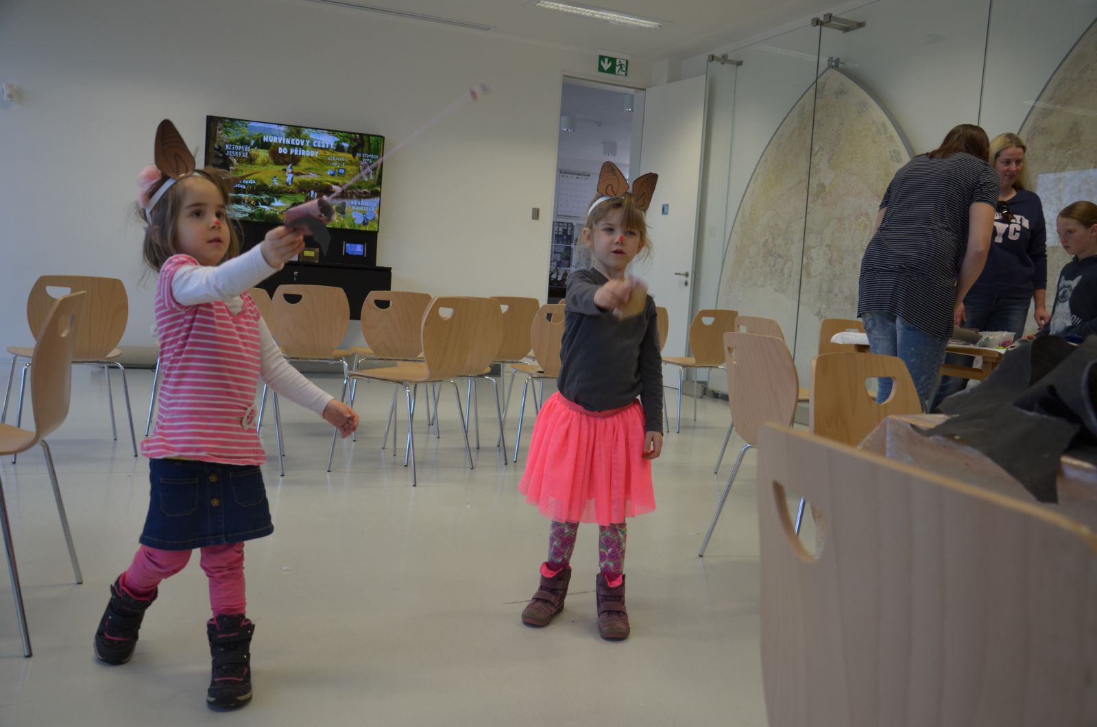 S ilustrátorkou Martinou tvořily děti jen s malou pomocí maminek a hlavně tatínků netopýry z ponožek, v dílničce spisovatelky Veroniky zase vyráběly a malovaly netopýry z papírových roliček, kteří do své otevřené tlamičky chytali korálek - pavouka. Posuďte sami, jak dětem i pořadatelům slušely netopýří čumáčky a uši. Došlo i na zkoušku krmení netopýrů, chovaných v zajetí, pinzetou kukuřičnými „červíky“.